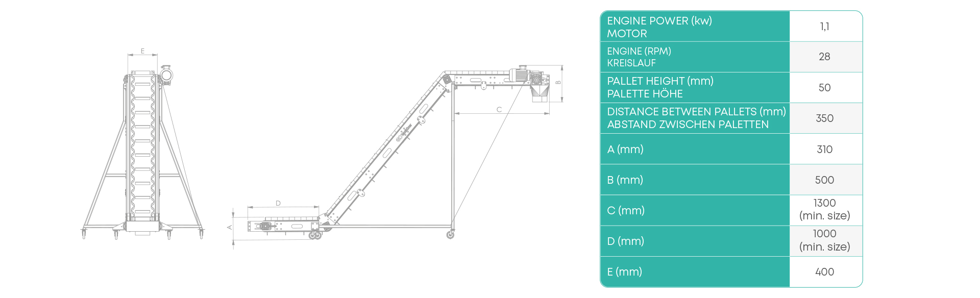 The frilly conveyor belt enables the material to be transported between two points with a level difference, by means of its powerful motor and special belt design.